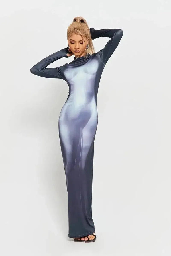 Body Printing Super Long Sleeve Body Robe Party Dress