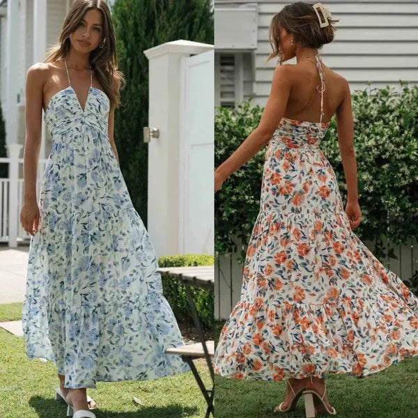Chiffon V-neck Sleeveless Long Patchwork Dress