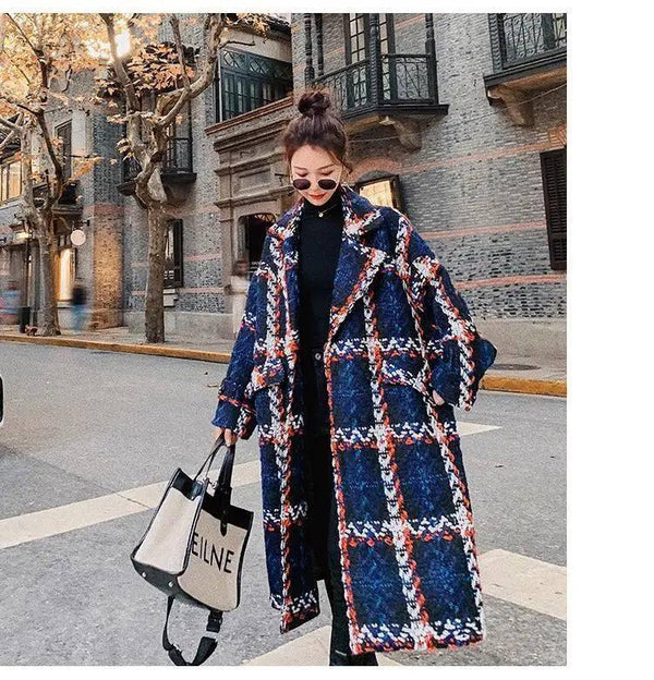 Contrasting Plaid Temperament Suit Collar Loose Straight