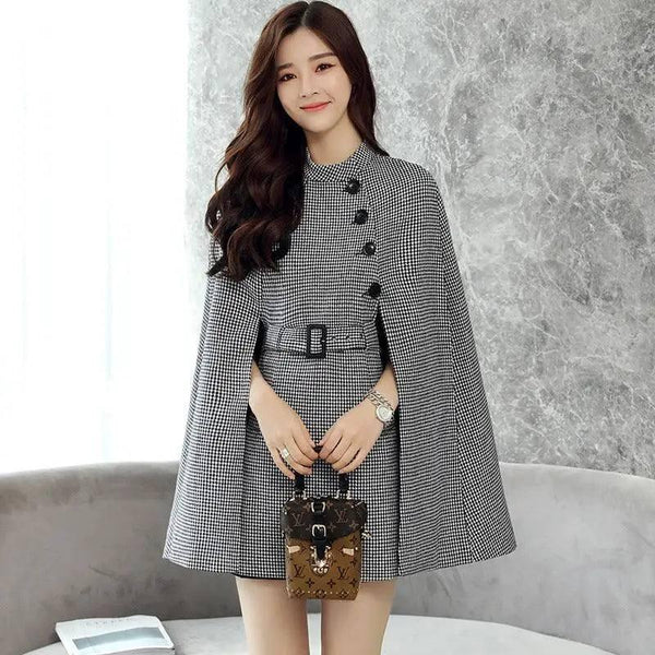 Product Description: Design Wool Cape Lace-up Collar Coat