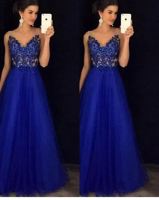 Dress Backless Beaded Ball Elegant Long Dress Blue Chiffon