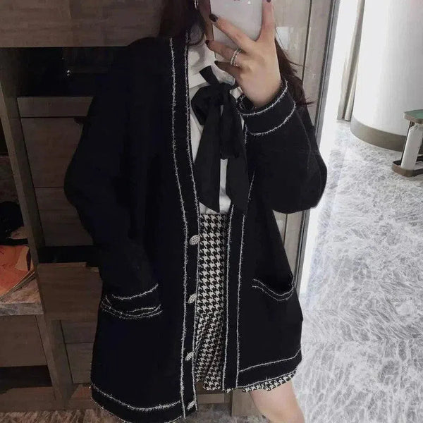 - Additional details: Contrasting trim along edges, front pockets, and button closure