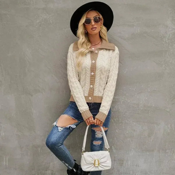 Fashion Short Lapel Knitted Cardigan Single-breasted Sweater