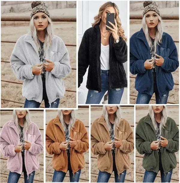 Fashion Women's Zipper Loose Thick Woolen Coat