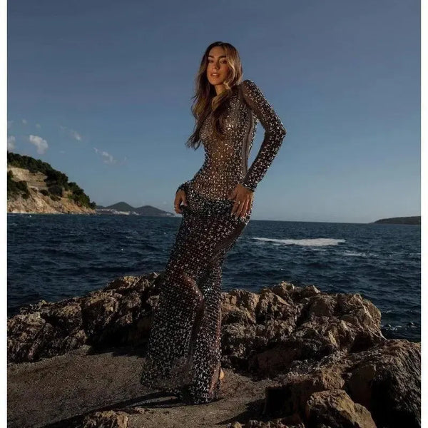 Product Description: Sparkly Long Sleeve Maxi Dress