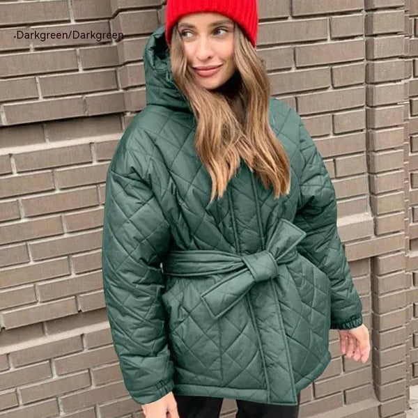 Hooded Cotton Jacket Slim-fit Lace Up Lapel Long Sleeve