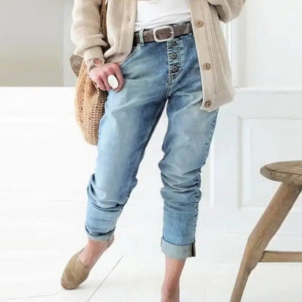 Jeans Women's Jeans Beaded Fashion Jeans Breasted Straight
