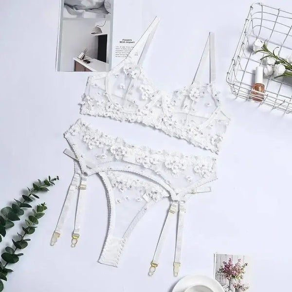 Lingerie Ladies Three-piece Embroidered Steel Ring