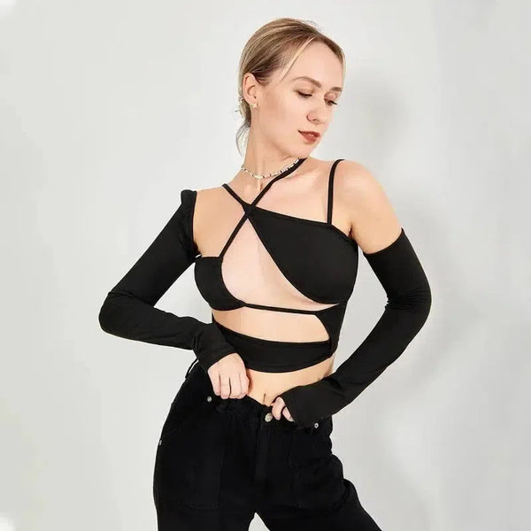 Long Sleeve Top Cut Out Asymmetrical Neck