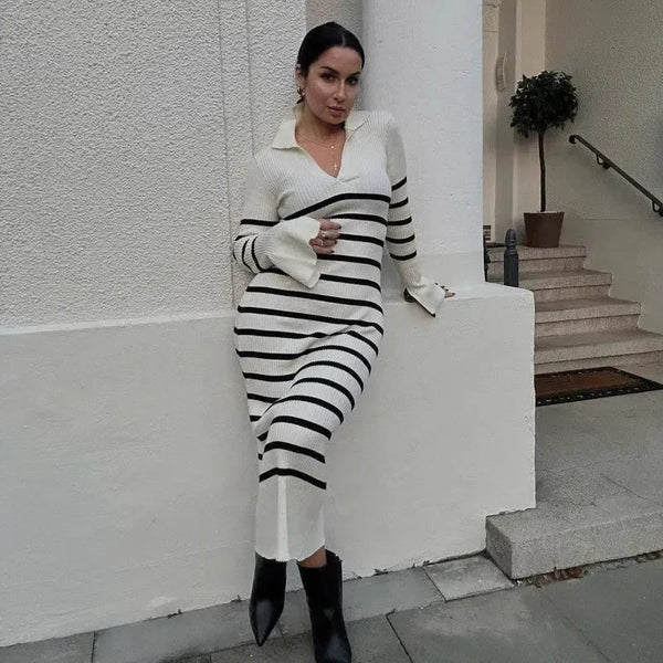 Long Sleeve Women's Knitted Deep V Dress