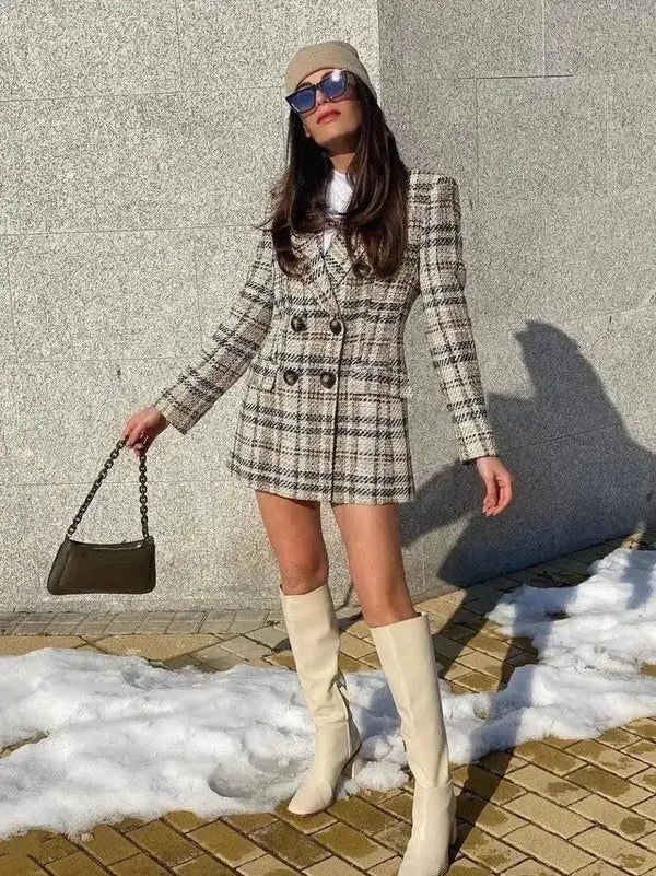 - Type of garment: Plaid blazer-style mini dress