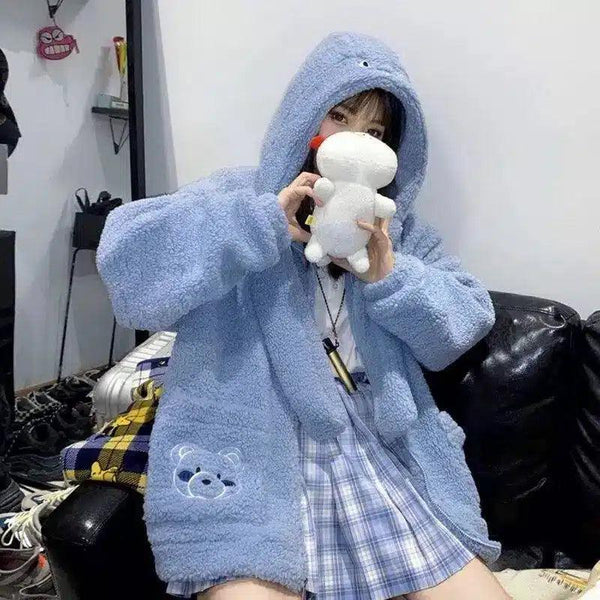 Bear Lamb Wool Coat Women Winter Plush Loose Plush Ears