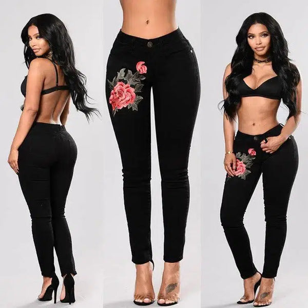 Product Description: Black Jeans with Embroidered Feet