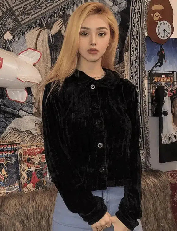 Velvet Button-Up Casual Jacket for Women