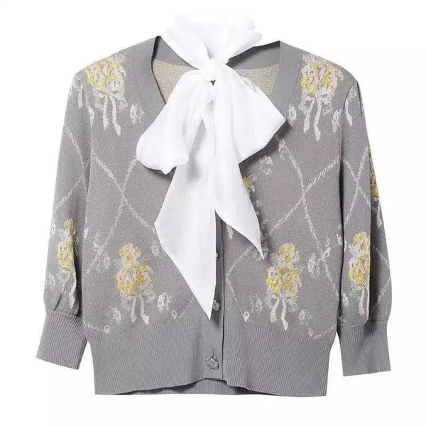 Women's Floral Cardigan with Bow Tie