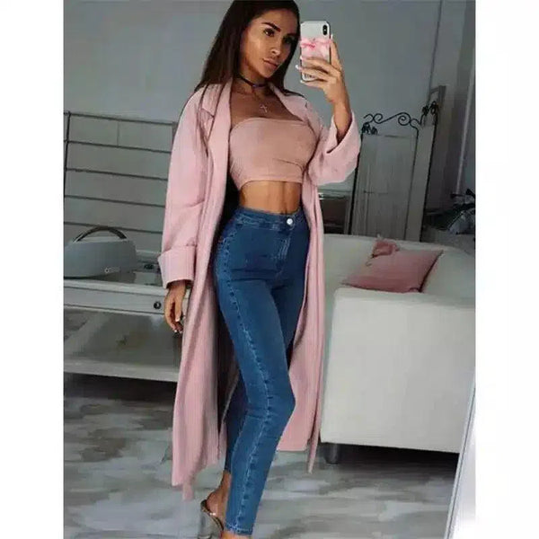 - Neckline or shoulder style: Open front with a relaxed shawl collar