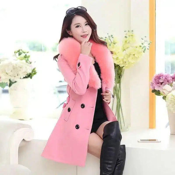 - Neckline: Plush fur collar