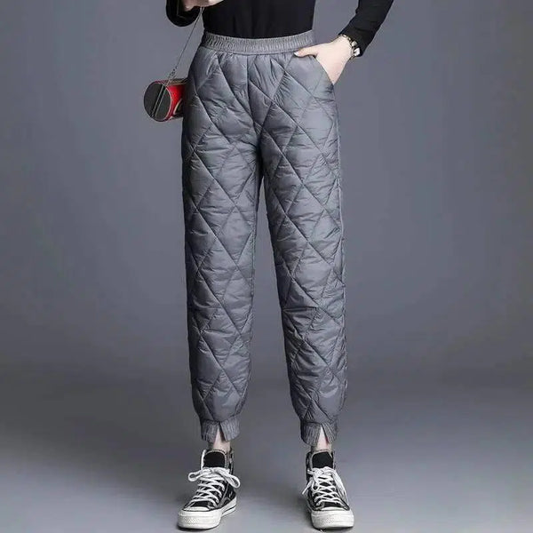 - Features: Diamond quilt pattern; elastic cuffs for a snug fit; side pockets for convenience
