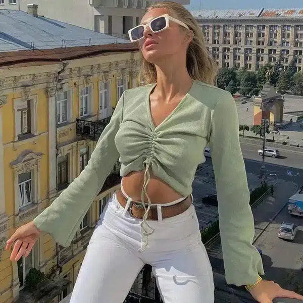 - Easy-to-Style Cut: The cropped cut of the top highlights the waist and pairs seamlessly with high-waisted jeans or skirts for a chic, modern look.