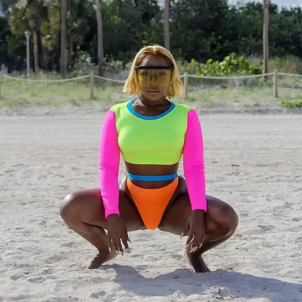 European And American Fashion Contrast Color Split Swimsuit