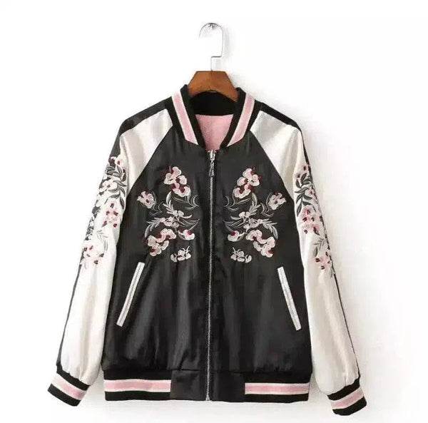 Embroidered Floral Bomber Jacket with Zip Closure