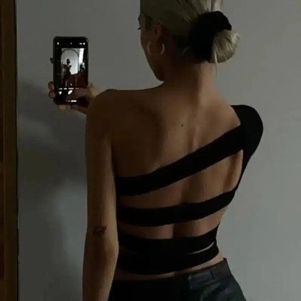 - Fit or Stretch: Body-hugging fit with horizontal strap details