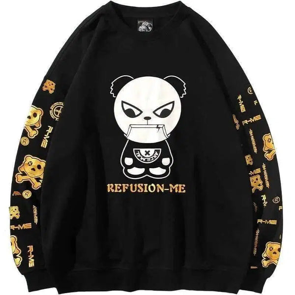 Hot Stamped Round Neck Panda Print Sweatshirt