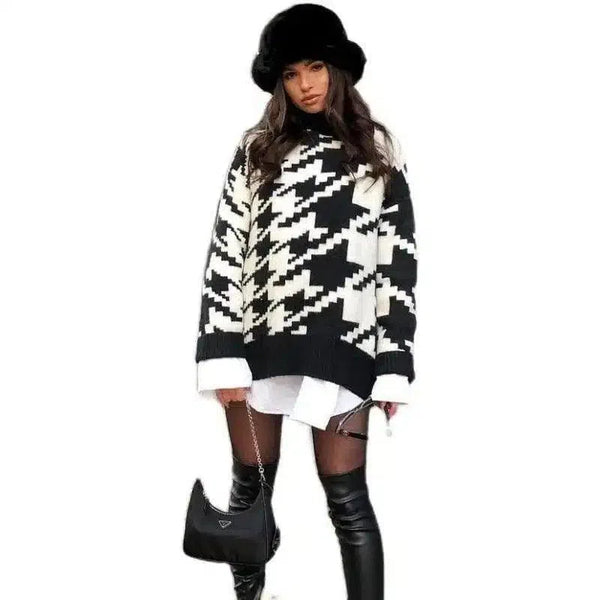 Warm Houndstooth Knit Sweater