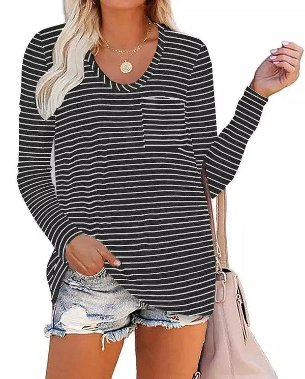 Women's Striped Long Sleeve T-Shirt with Pocket
