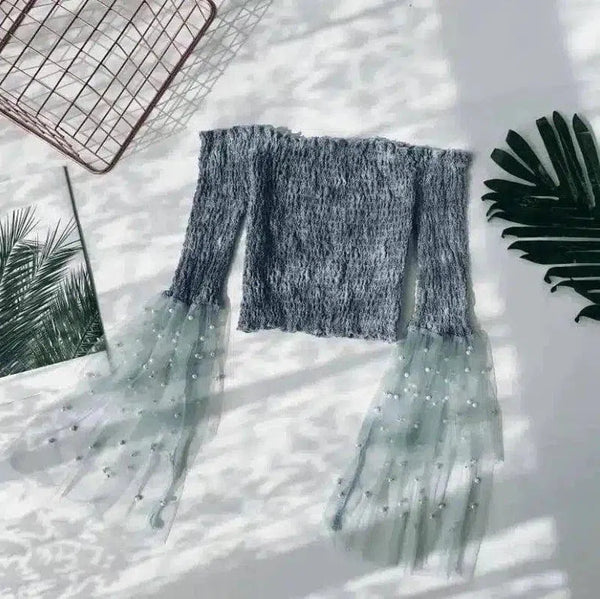 - Sleeve length: Long sleeves with extended sheer cuffs