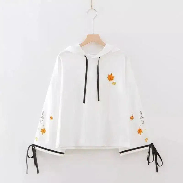 - Design Details: Embroidered Autumn Leaves Motif on Sleeves and Chest