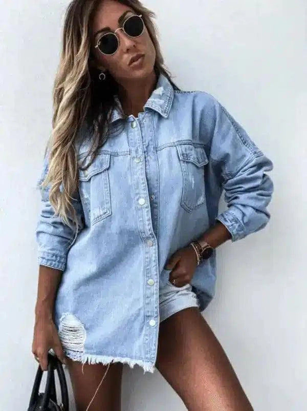 Women's Casual Denim Shirt with Pockets