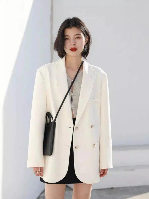 Women's Double-Breasted Blazer with Shoulder Bag