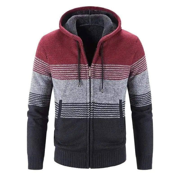 Men Hooded Stripe Coat Cardigan Male Thick Zipper Wool