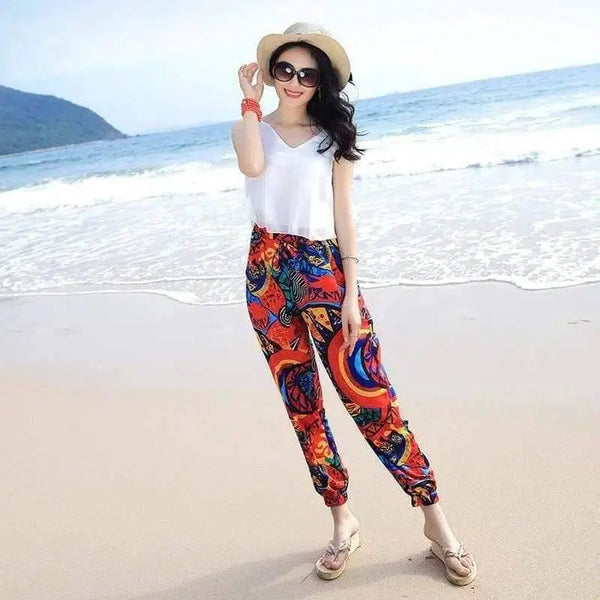 - Type of Garment: Casual summer outfit featuring a loose-fitting top and vibrant patterned pants