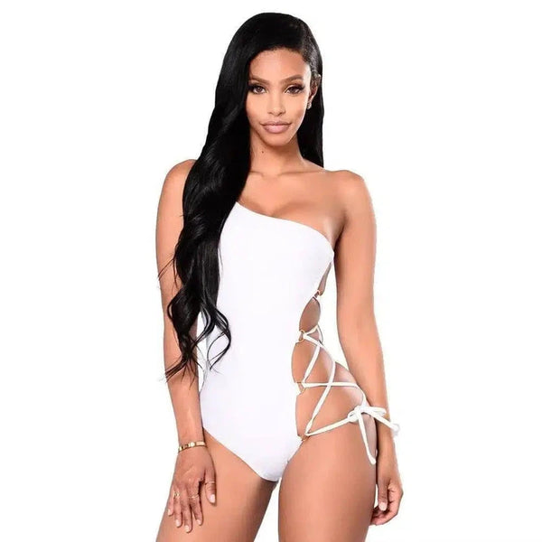 One-shoulder bikini swimsuit with hoop cross strap