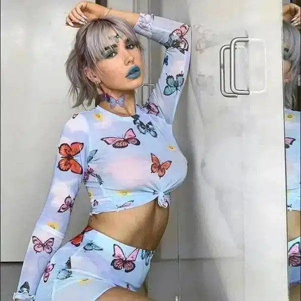 Perspective Printed Butterfly Long Sleeve T-shirt