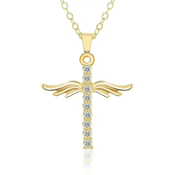 - Design: Simple cross pendant featuring intricately designed angel wings