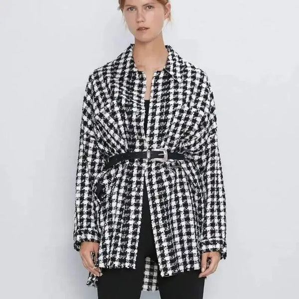 Womens Houndstooth Belted Jacket