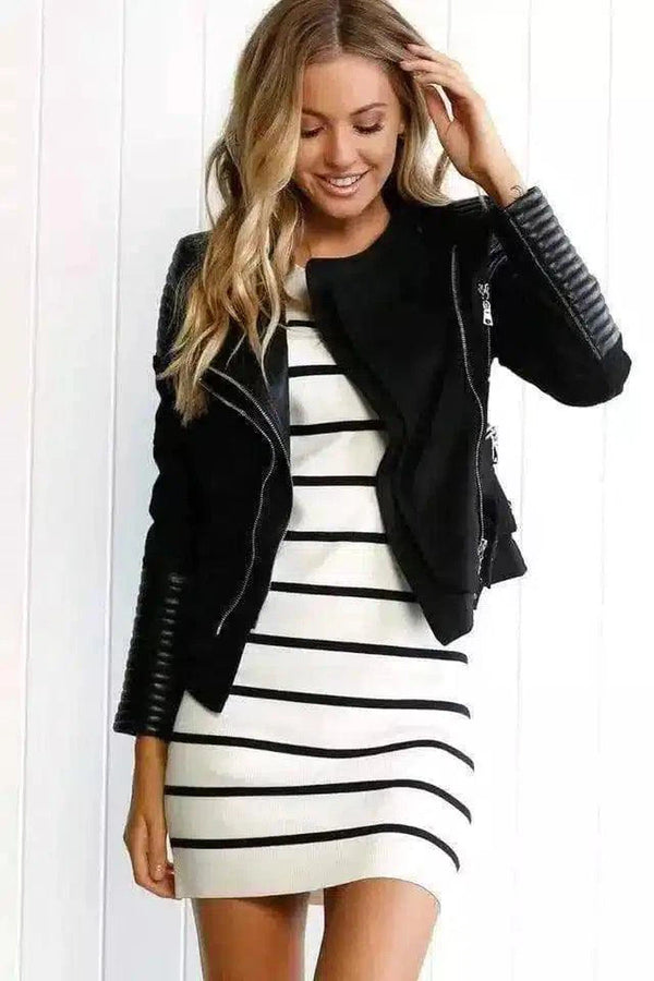 Spliced Faux Leather Suede Jacket Women Black Moto Coat Punk