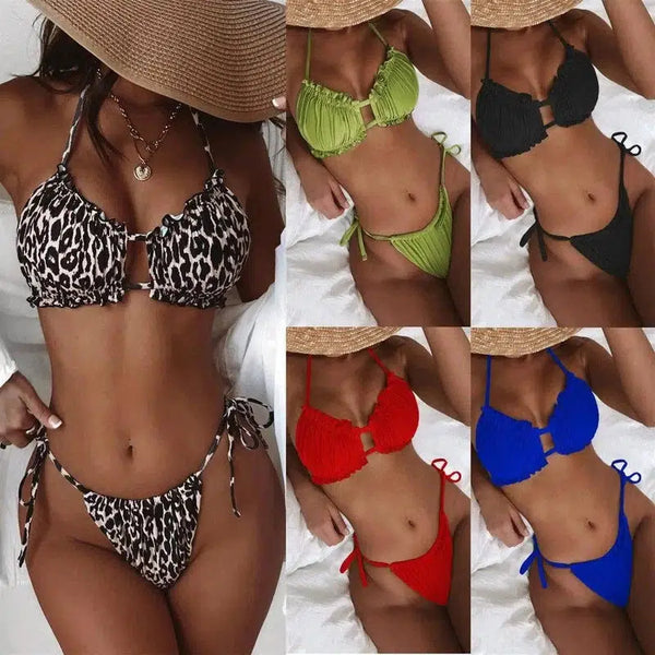 Split Solid Color Low Waist Bikini