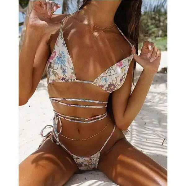 Product Description: Split Swimsuit - Floral Long Rope Split