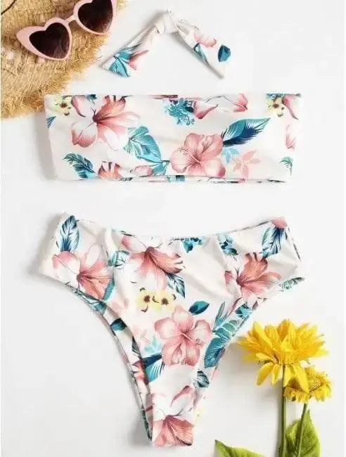 Split Tube Top Print Bikini