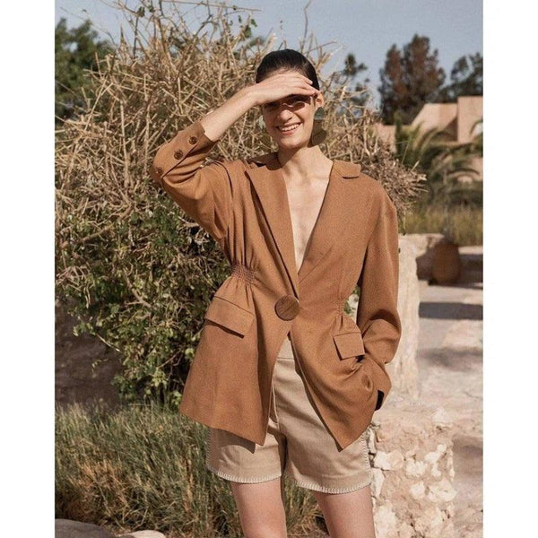 - Fit: Tailored fit with a cinched waist for a flattering silhouette
