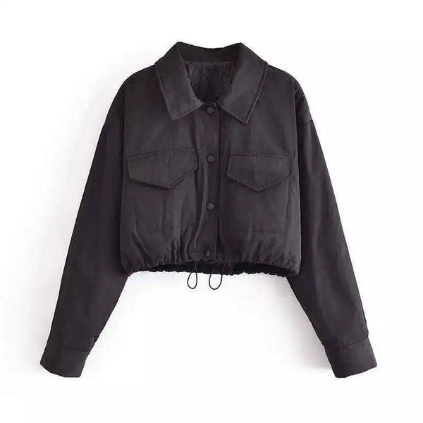 This cropped jacket combines style and comfort, perfect for layering in any season.