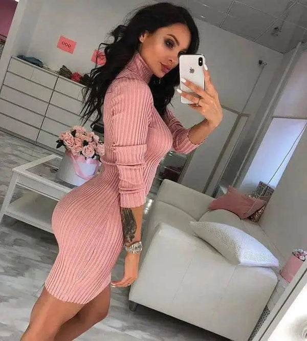 Turtleneck Slim Long Sleeve Dress