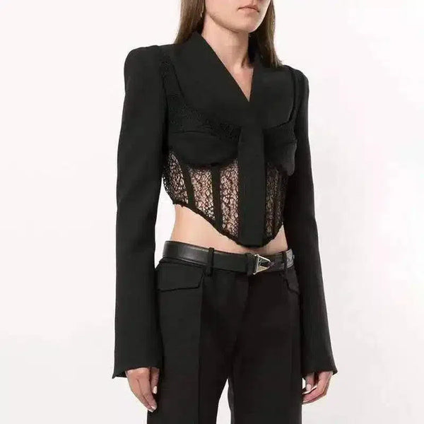 Elegant Lace Detailing: The blazer showcases intricate lacework that adds a touch of feminine allure to the overall design, perfect for those who appreciate fine craftsmanship.
