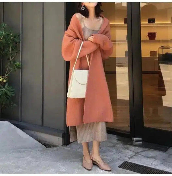 Warm Long Coat & Knit Dress Women's Fashion Combo