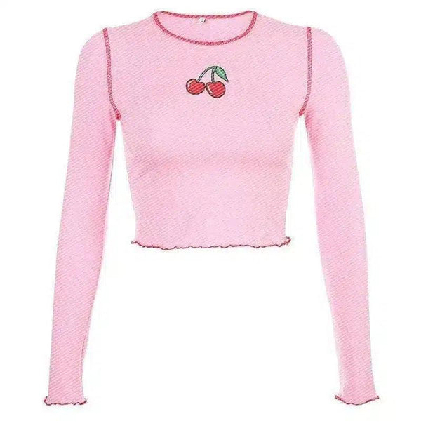 Women's Long Sleeve Crop Top with Cherry Design