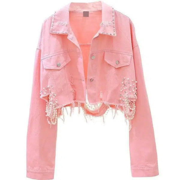 - Fit: Relaxed with Distressed Hem and Decorative Accents